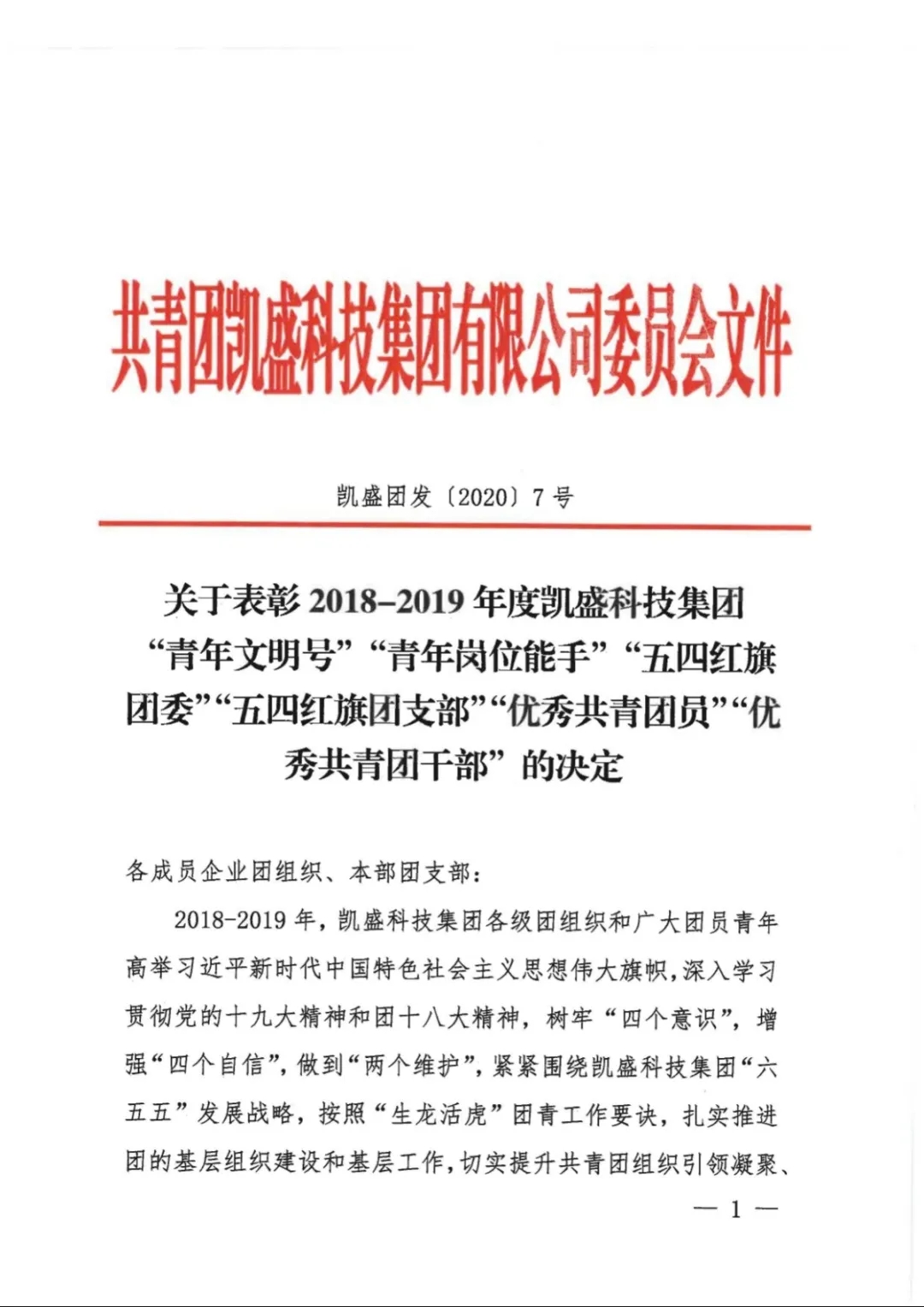 On April 28, KaiSheng Technology Group Co., Ltd. issued a decision to honor the "Youth Civilization Number," "Youth Skilled Worker," "Five-Four Red Flag Youth League Committee," "Five-Four Red Flag Youth League Branch," "Outstanding Young Communist League Member," and "Outstanding Young Communist League Cadres" of the KaiSheng Technology Group for the period from 2018 to 2019. ZhongChen Light...