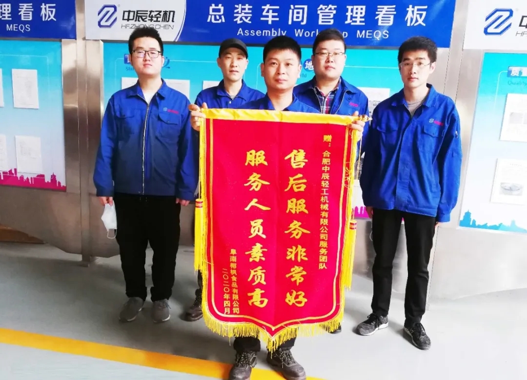 The Service Team of Zhongchen Light Machinery's Assembly Workshop Receives a Thank-you Banner from a Customer