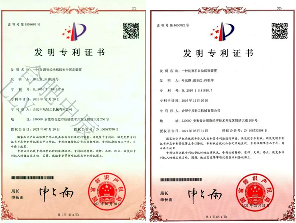 Good news! Zhongchen Light Machinery has once again received a patent for its washing machine invention!